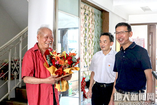 校党委副书记成金华带领离退休工作处处长蔡楚元、学校办公室副主任单红峰、安全保卫部副部长郭敬印等同志,先后看望慰问了汉口社区老战士刘锡林同志、张光明同志和南望山校区老战士于新洲同志、张观华同志,代表学校表达对老同志们的关心,祝福老战士们福寿安康、安享晚年,并为他们送上鲜花、果篮和慰问金。 (文字编辑田甜)