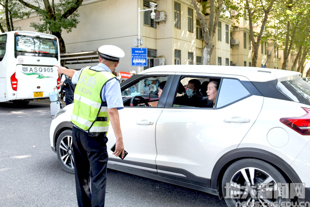安全保卫部100余名工作人员分散在学校各处,进行入校检查、维护交通秩序、开展治安巡逻等,为迎新工作保驾护航。