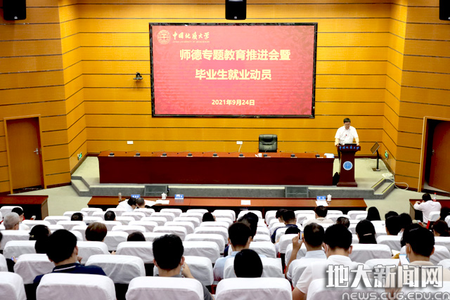 地大新闻网讯(通讯员刘治国 刘志兴 摄影莫豫锋 石欣宇)9月24日,师德专题教育推进会暨毕业生就业动员会在南望山校区东区教学综合楼A0113举行。副校长刘杰、刘勇胜,校党委常委、宣传部部长储祖旺,各分党委(党总支部)书记、副书记,师德师风建设工作小组联络人,相关职能部门负责人以及2022届毕业生辅导员参加会议。刘杰主持会议。