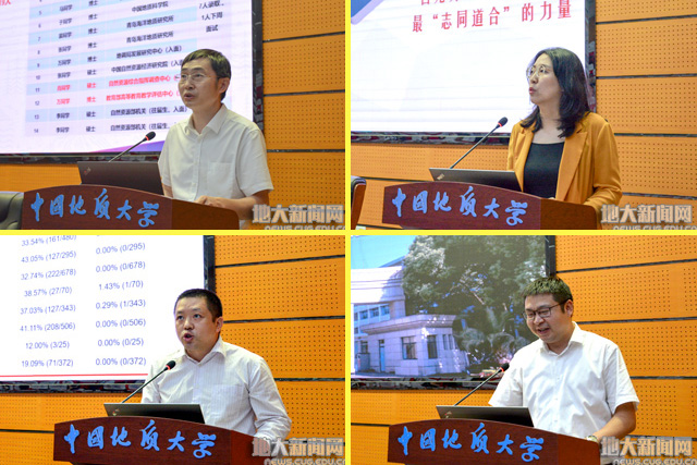 地球科学学院党委书记周刚、计算机学院党委副书记傅苑、学生就业指导处处长严嘉、校友与社会合作处处长陈华荣围绕如何促进毕业生更充分更高质量就业依次交流发言。