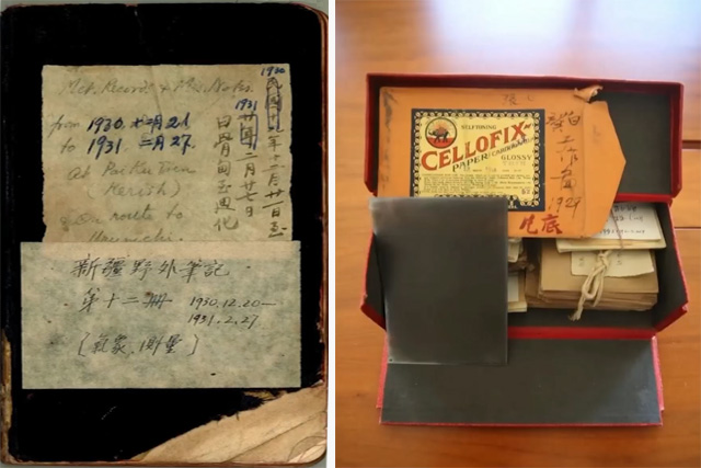 袁复礼西北考察笔记(左)和整理的考察团摄影底片(右)