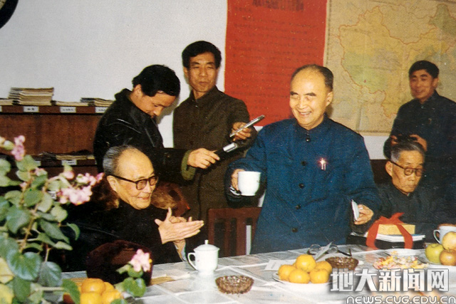 袁复礼90诞辰庆祝会上,黄汲清代表中国地质学会致词后,举杯“祝师长寿敬一盅”