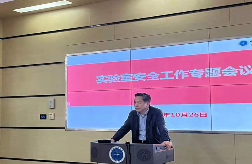 (通讯员侯建湘 王艳波)10月26日,学校召开科研平台实验室安全工作专题会议。副校长、高等研究院院长周爱国,高等研究院、实验室与设备管理处、未来城校区管理办公室、新校区建设指挥部、环境学院、材化与化学学院、计算机学院、地理与信息工程学院、经济管理学院等单位负责人,以及高等研究院各科研平台实验室全体工作人员参加会议。会议采取线上线下方式在两校区同步举行,主会场设在未来城校区公教楼。