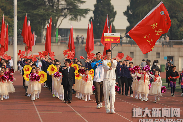 地大新闻网讯(学生记者胡芯蕊 吕晗月 潘柯宏 田宇 扎西拉姆 陈金 蔡玲 朱师锐 摄影王俊芳 张玉贤 杨泽慜 王嘉瑞 侯浩威 张健凯 孙长恒 陈叙 梁子慧 尚宗义)10月29日,学校秋季运动会在南望山西区运动场开幕。校领导黄晓玫,成金华,赖旭龙,王华,王林清,刘杰,刘勇胜,周爱国,党委常委、宣传部部长储祖旺,校长助理蒋少涌,学校各二级单位负责人及全校4000余名师生参加开幕式。