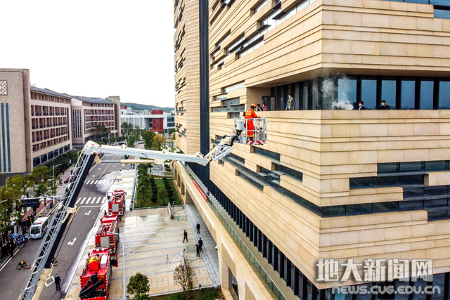 本次演练在南望山校区设总指挥部,学校党委副书记王林清担任现场总指挥,下设八个工作组有序开展消防演练保障。东湖新技术开发区左岭消防救援站对本次演练给予了大力支持,出动四台消防救援车辆及二十名队员,确保演练救援及逃生任务圆满完成。