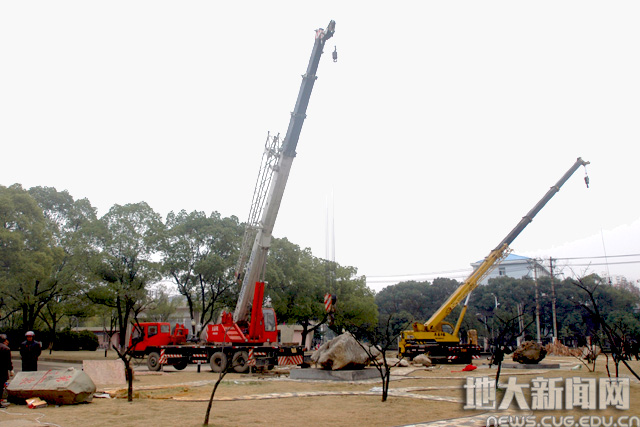 小石头好运,重达20吨的大石头,怎么运到山下呢?用一辆吊车往山下拉,无法控制石头的力度,于是,任有福等人在当地找来两辆吊车,一辆吊车用缆绳将石头捆住,慢慢往山下吊,一辆吊车在山底下缓慢地拉。就这样,费尽九牛二虎之力,终于平安将这块叠层石运到山下。在该公园工作人员的陪同下,任有福等人火速跟车赶回武汉,于2007年12月20日吊装完毕,为地大校园增添了一道靓丽的地质景观。