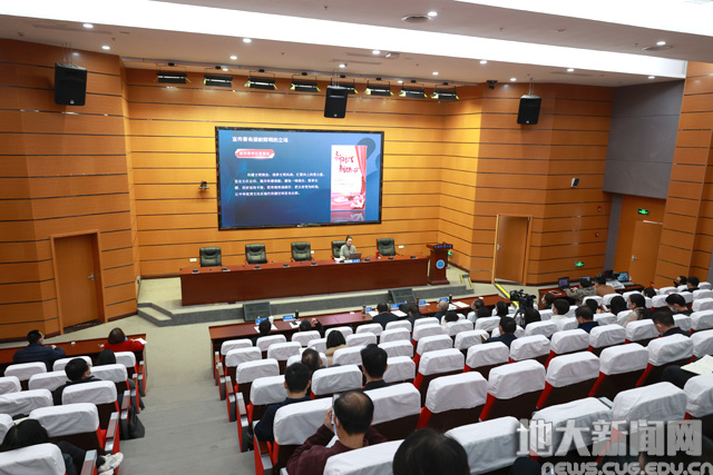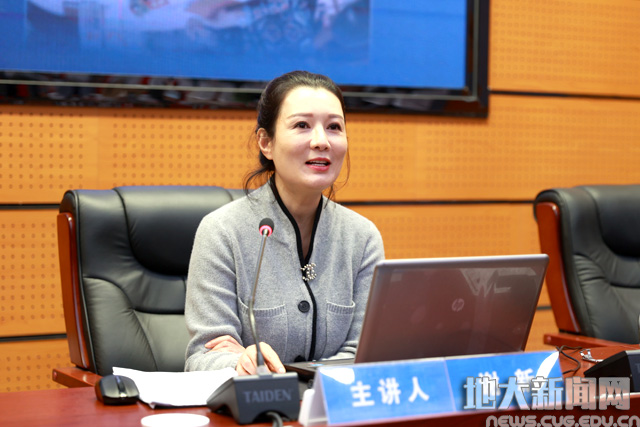 谢新以《宣传是留下记忆和延伸记忆的途径》为题,从新华社的思想教育开始,以习近平论宣传思想工作的使命为切入,运用大量第一手资料,带领大家学习宣传工作的技巧和融媒策划的要领。她说,高校宣传工作是我们党宣传工作的重要组成,高校领导干部和广大师生要树立宣传意识,不断增强宣传本领,宣传工作要站在时代的大舞台、要善于讲好大学发展故事、不断挖掘师生先进典型、对于大型活动要善于策划,善于开展媒体立体宣传。她以重要人物采访与时代优秀新闻作品为例,指出媒体宣传要对主题进行准确的把握。对地大明年到来的70周年校庆,她表示衷心祝愿的同时,也对地大媒体宣传工作提出了建议。谢新表示,宣传工作要广泛传递社会正能量,领导干部和广大师生要树立正确的宣传理念,加强道德修养和媒体素养,用富有思想深度和感染力的宣传作品启迪心智、引领风尚。