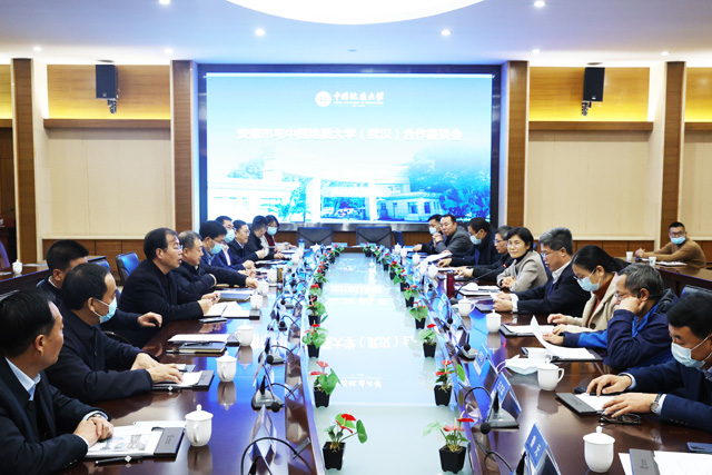 武文罡介绍安康情况并感谢学校对安康富硒产业持续健康发展做出的重要贡献和对安康城市建设的支持。他表示,安康在“十四五”期间,迫切需要人才、科技和项目支持,希望与地大在富硒资源开发利用、科研平台建设、科技成果转化、城市规划建设、地质灾害防治、水资源保护等领域展开产学研合作,并建立长期全面的战略合作关系。