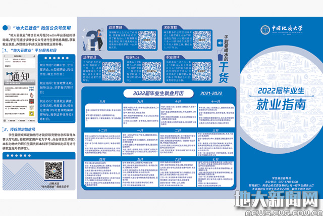 学校积极探索“互联网+就业服务”模式,建成“一网一微一端”智慧就业服务平台,集信息发布、招聘管理、电子签约、动态监测、精准推送和指导咨询等六大功能。以“用心、用情、用力”为理念,坚持人文关怀,分时分类精准服务,全程助力学生求职发展。将日常就业政策要点、手续办理流程、常见问题解答等分类梳理,设计并印制7000份《毕业生就业指南》的服务介绍单页、在“地大云就业”微信公众号设立服务指南等,帮助同学及时了解就业政策、顺利完成手续办理。