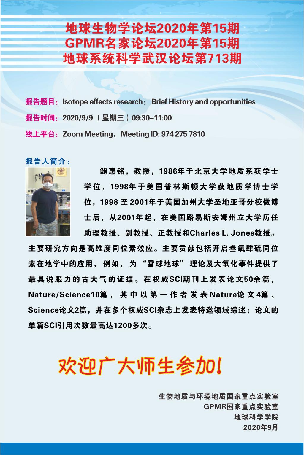 【9月9日】地球生物学论坛:美国路易斯安纳州立大学鲍惠铭教授学术报告