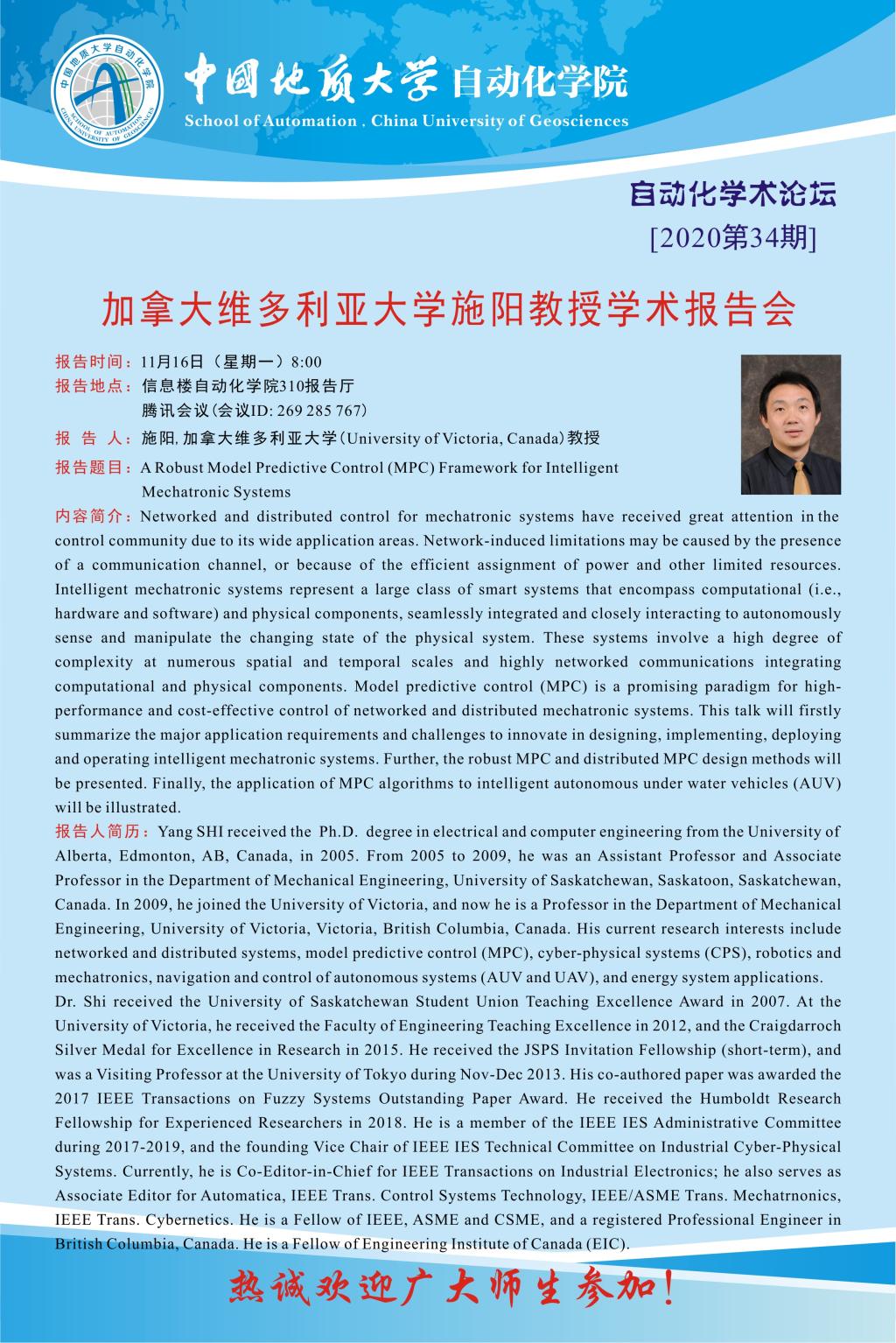 【11月16日】自动化学术论坛:加拿大维多利亚大学施阳教授学术报告会