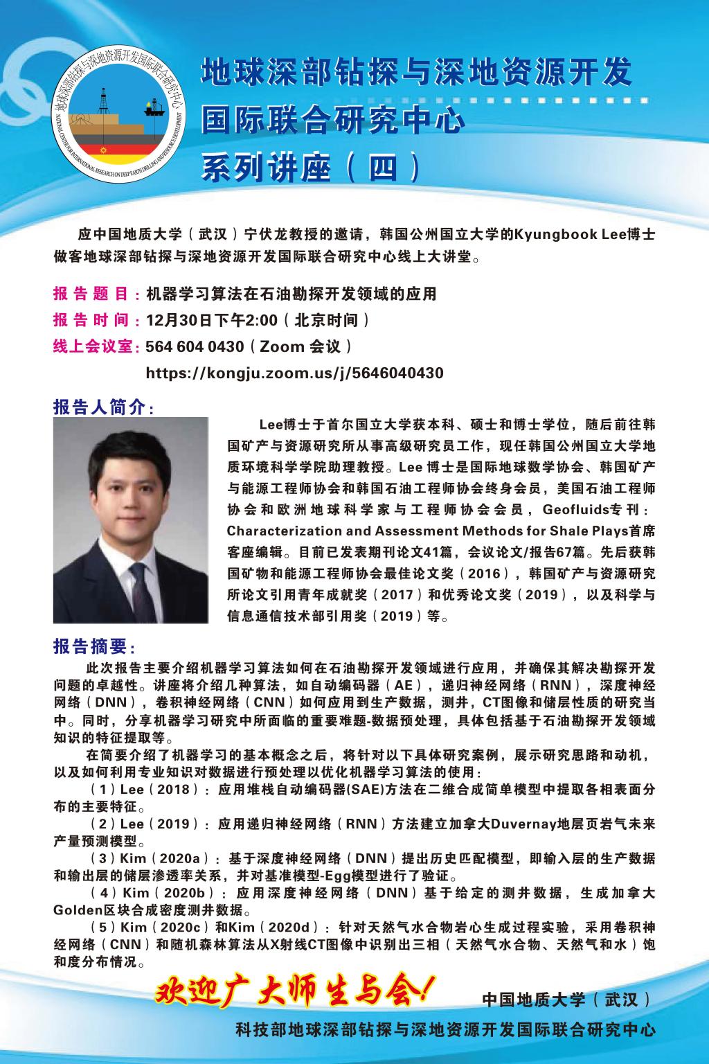 【12月30日】地球深部钻探与深地资源开发国际联合研究中心系列讲座:机器学习算法在石油勘探开发领域的应用
