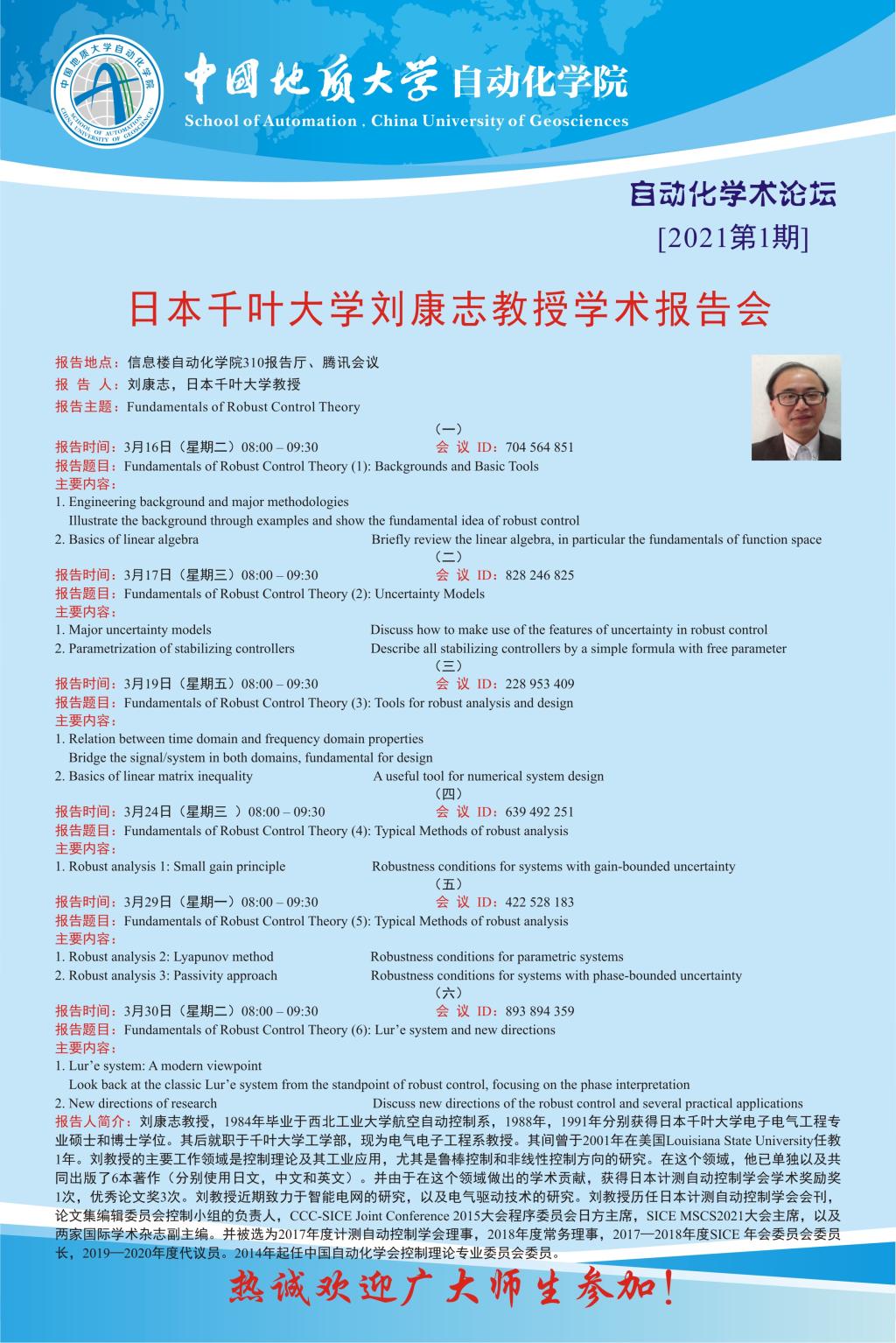 【3月16-30日】自动化学术论坛:日本千叶大学刘康志教授学术报告