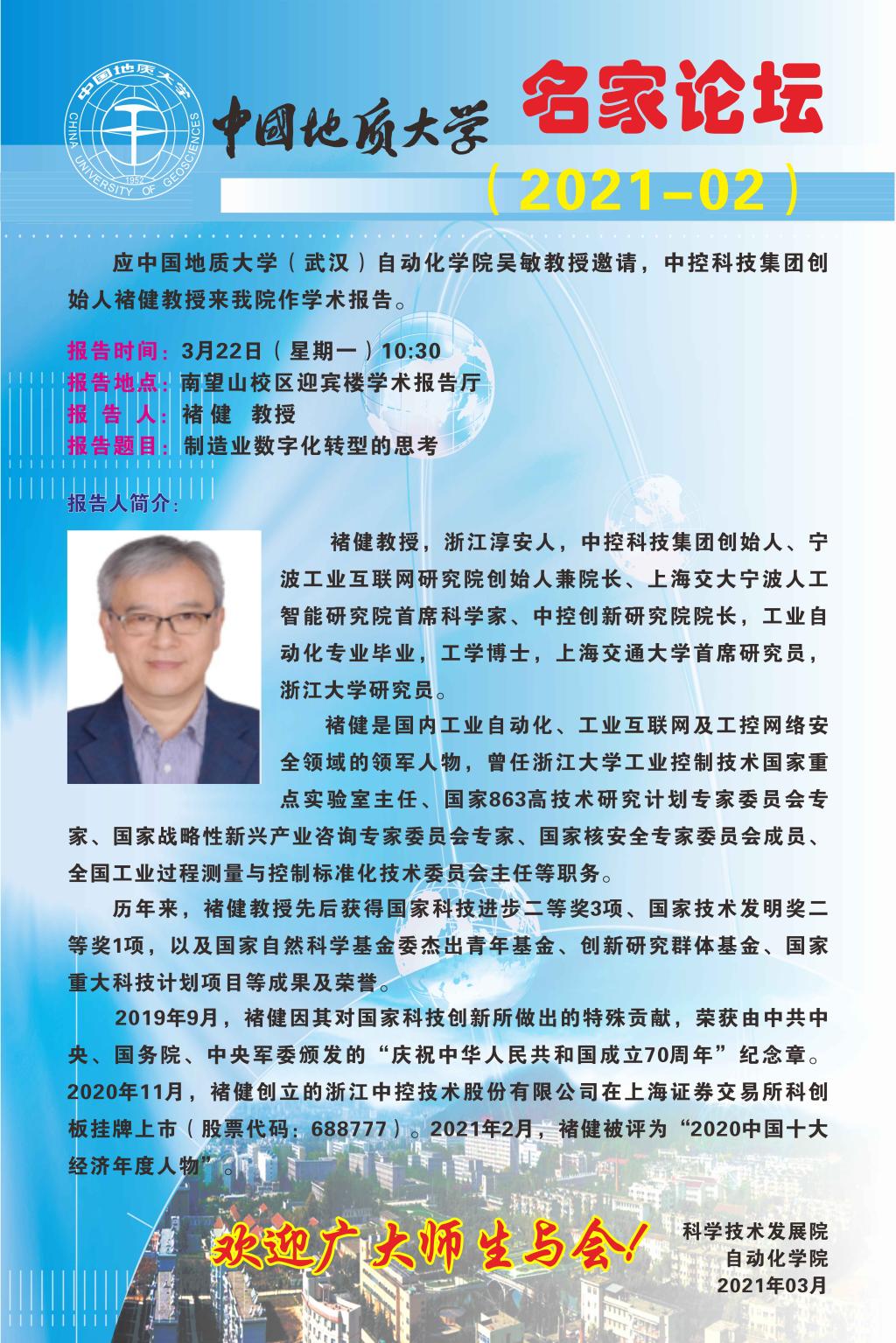 【3月22日】名家论坛:中控科技集团创始人褚健教授学术报告