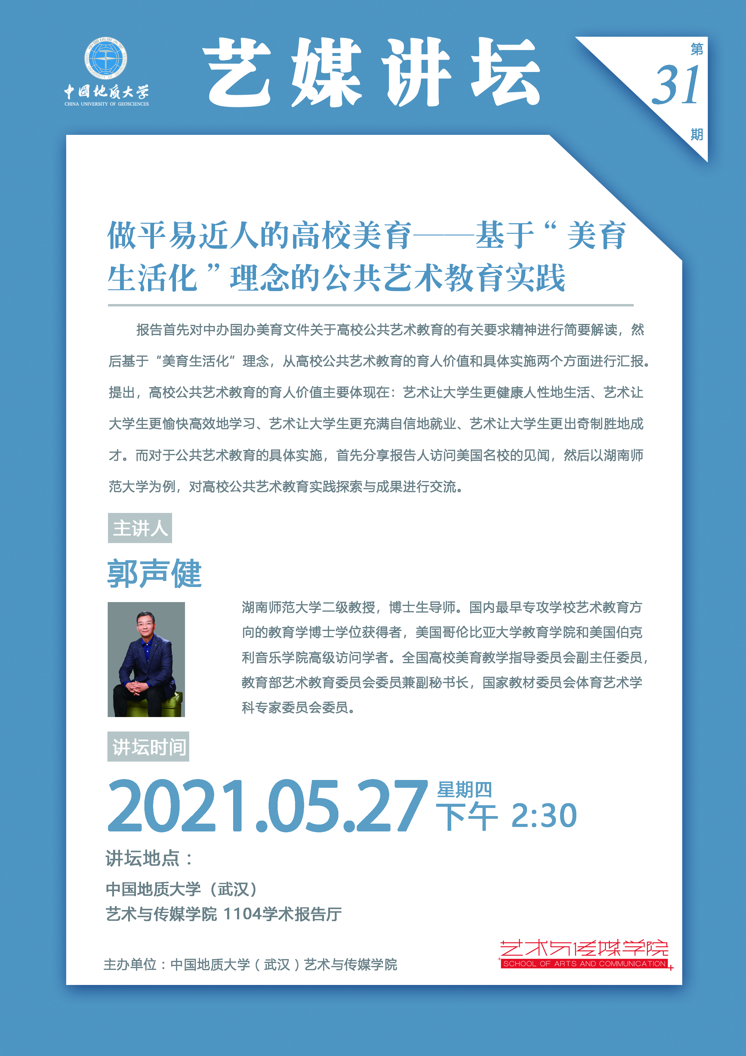 【5月27日】艺媒讲坛:做平易近人的高校美育——基于“美育生活化”理念的公共艺术教育实践