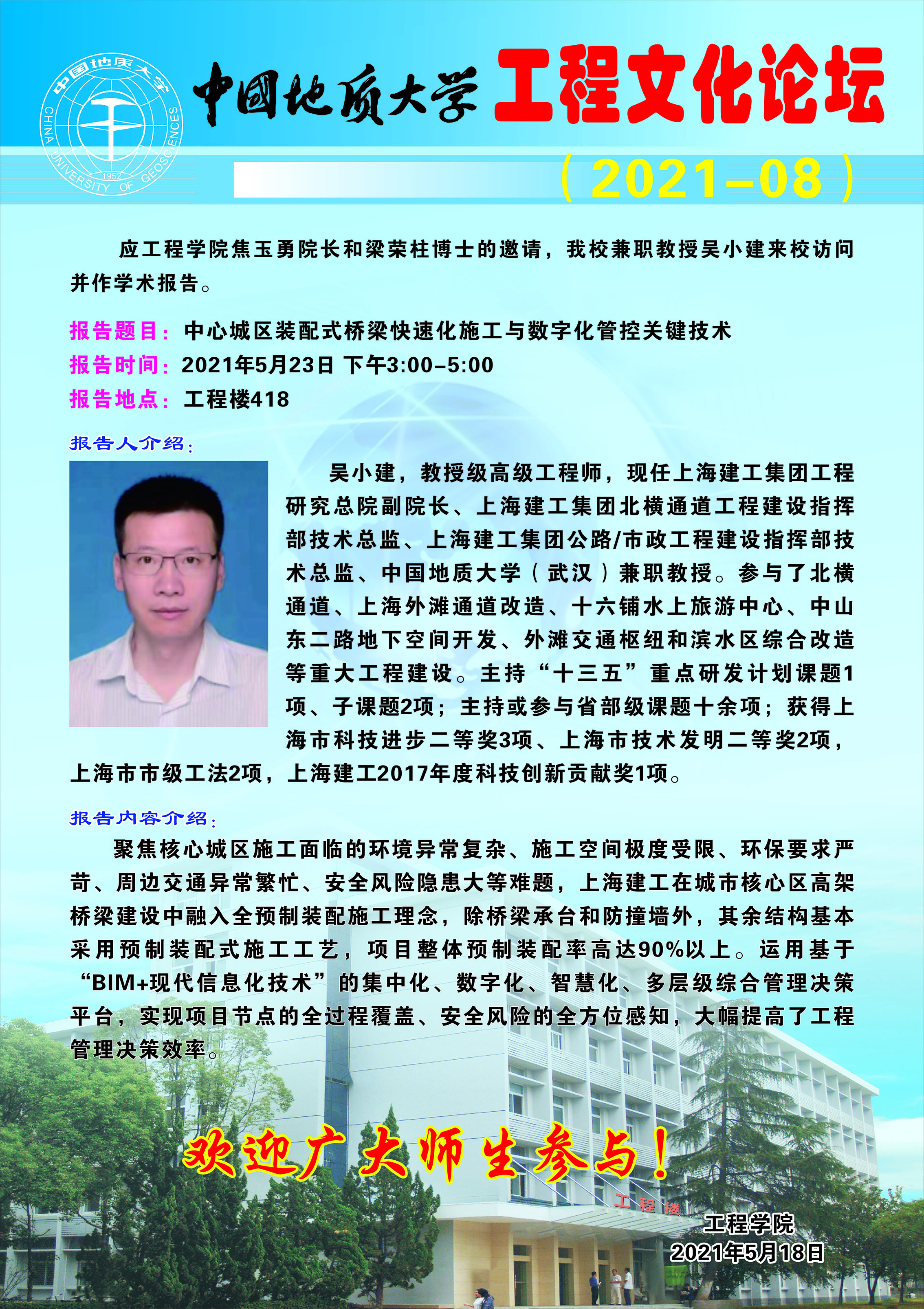 【5月23日】工程文化论坛:吴小建教授学术报告