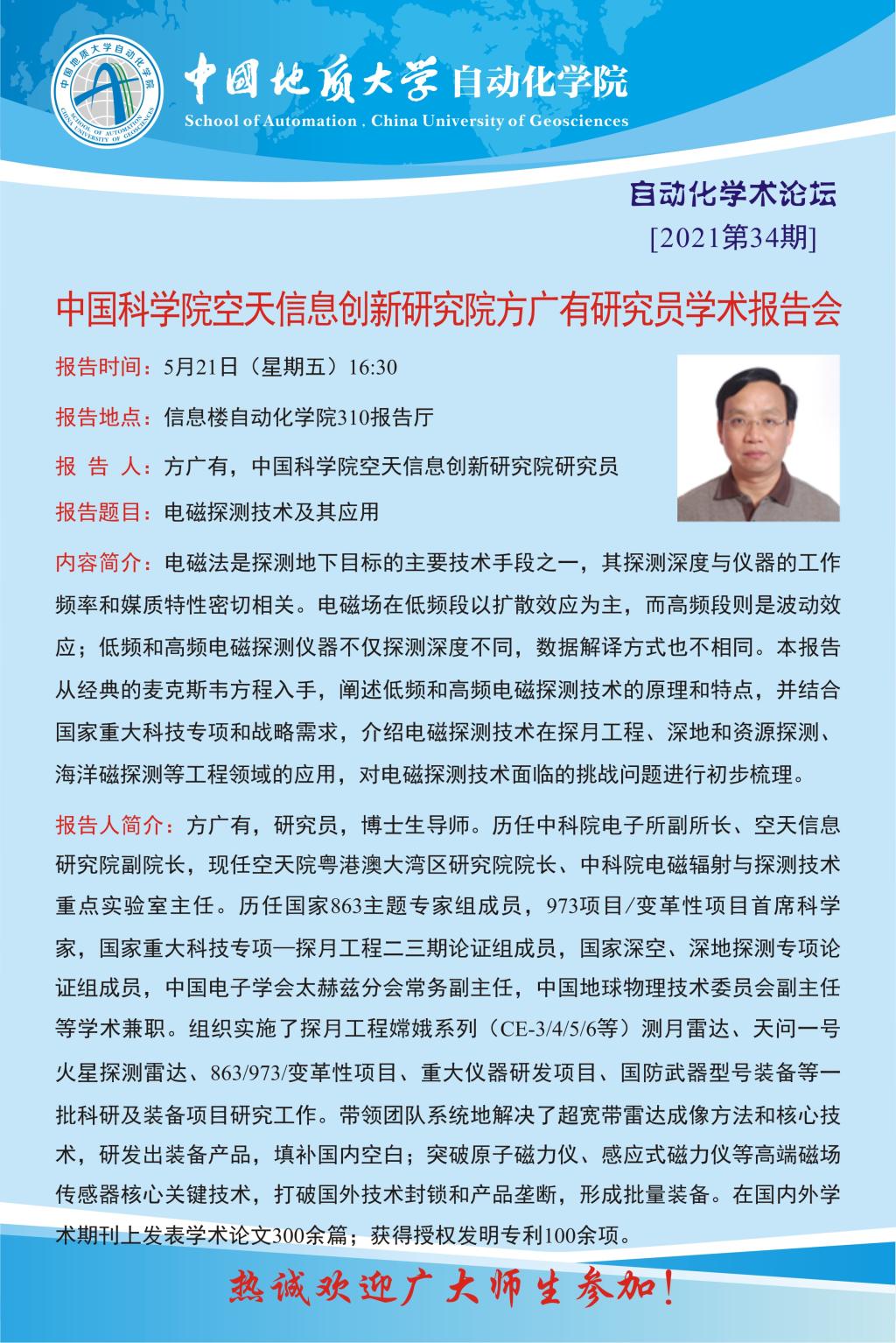 【5月21日】自动化学术论坛:中国科学院空天信息创新研究院方广有研究员学术报告