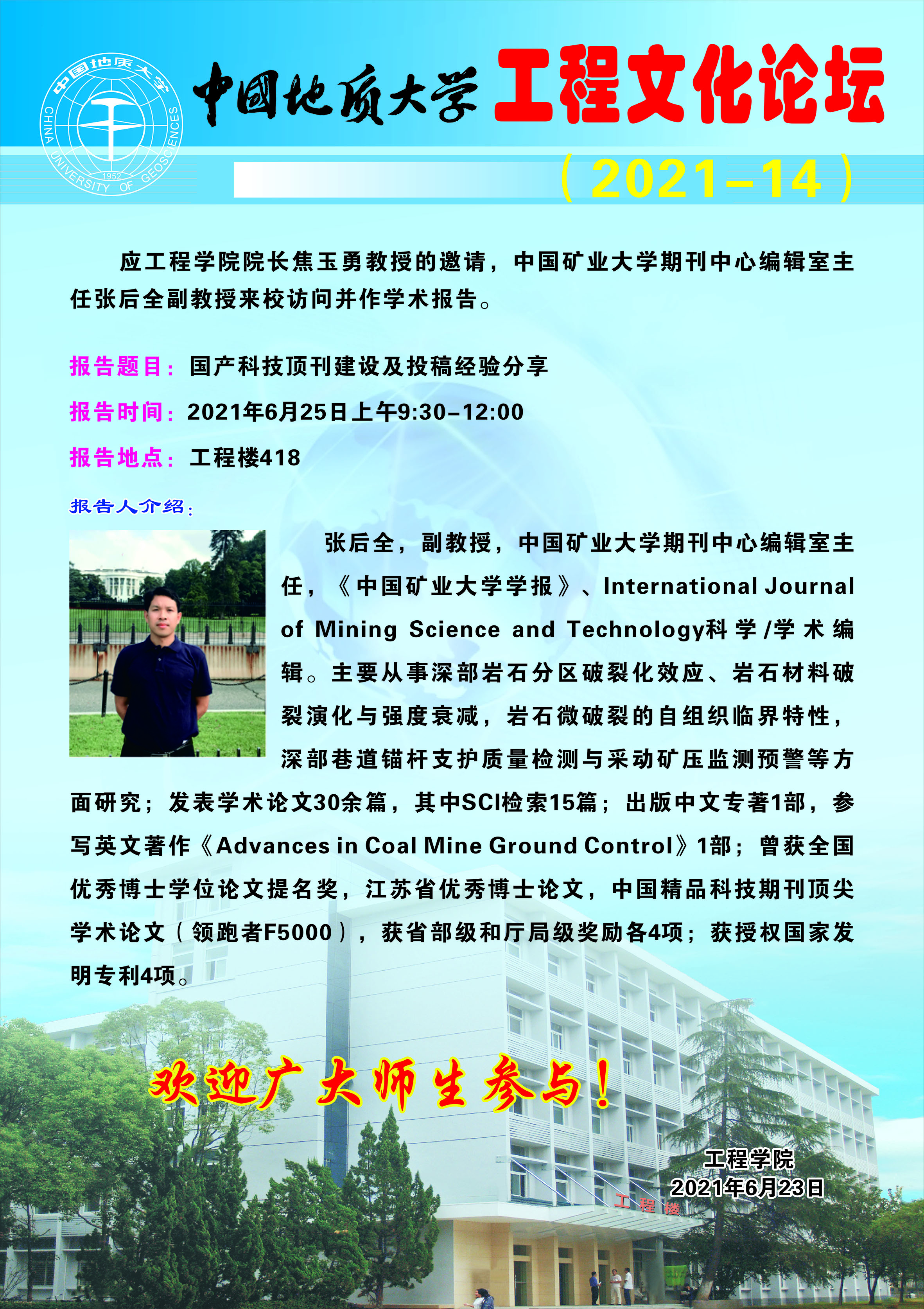 【6月25日】工程文化论坛:中国矿业大学期刊中心编辑室主任张后全副教授学术报告