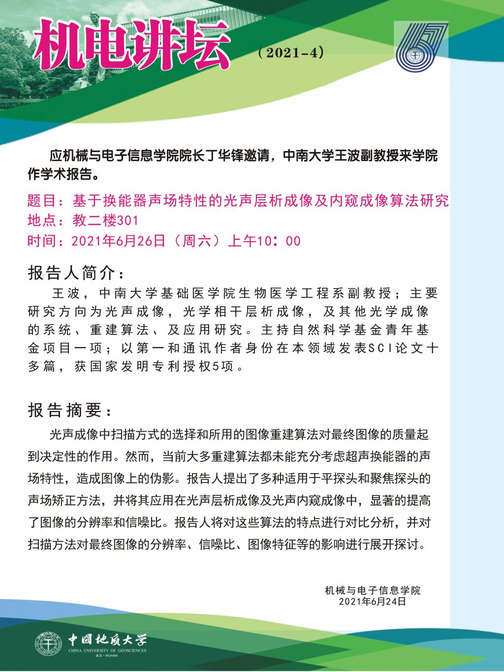 【6月26日】机电讲坛:中南大学王波副教授学术报告
