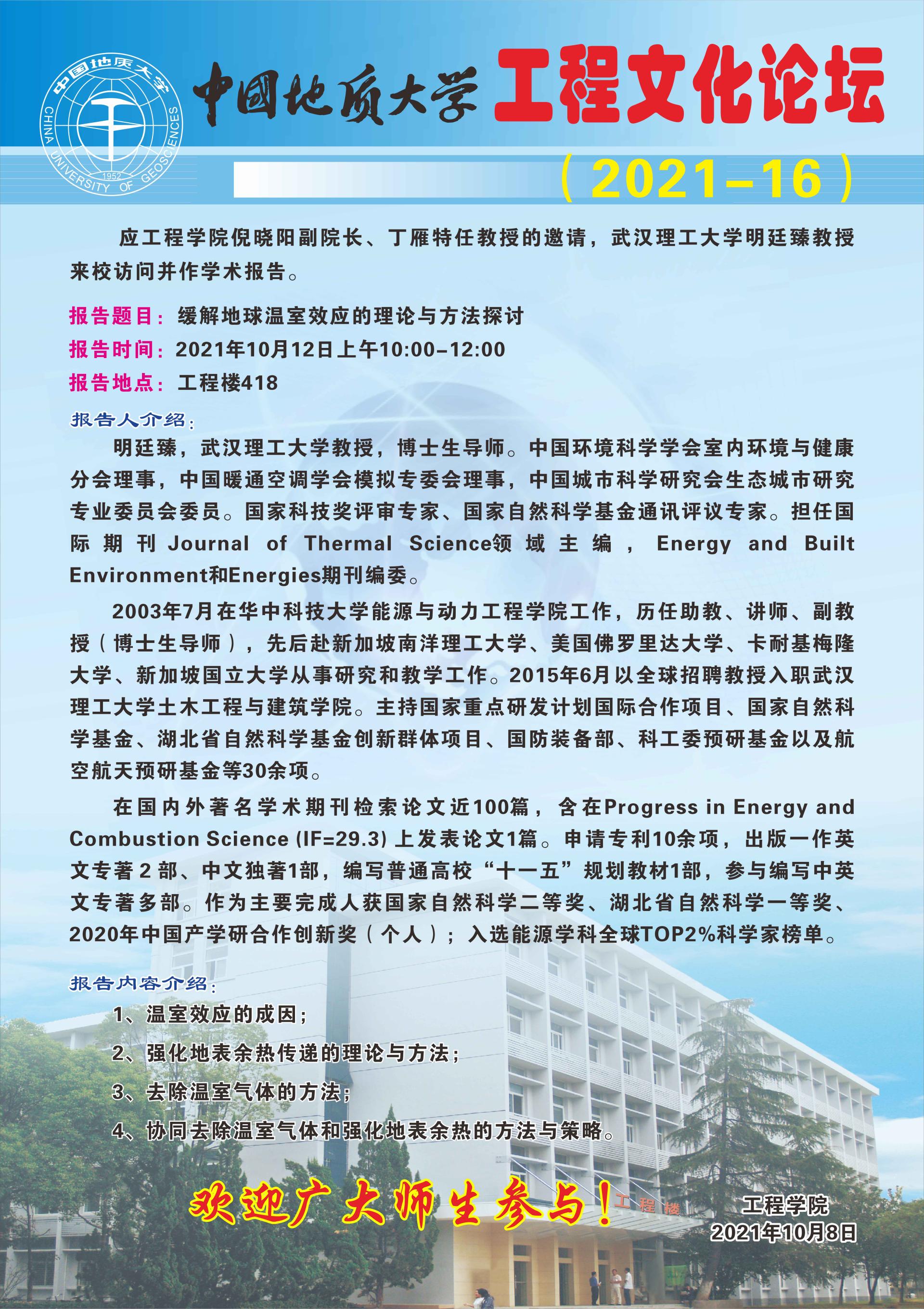 【10月12日】工程文化论坛:武汉理工大学明廷臻教授学术报告