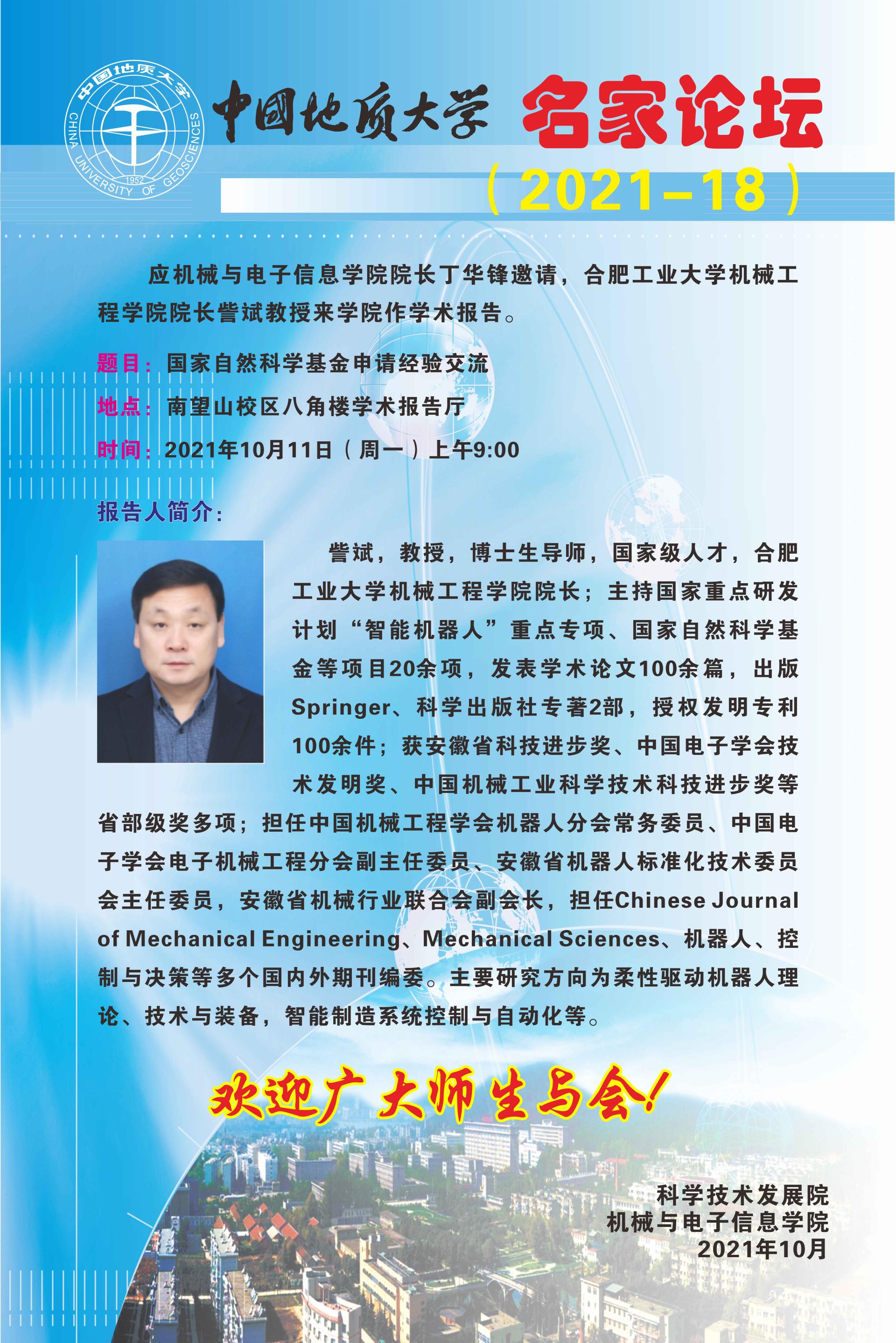 【10月11日】名家论坛:合肥工业大学机械工程学院院长訾斌教授学术报告