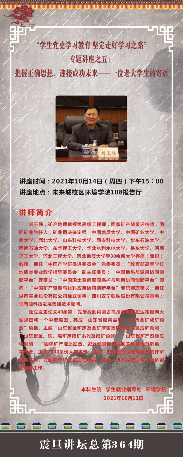 【10月14日】“学生党史学习教育 坚定走好学习之路”专题讲座之五:把握正确思想,迎接成功未来——一位老大学生的寄语