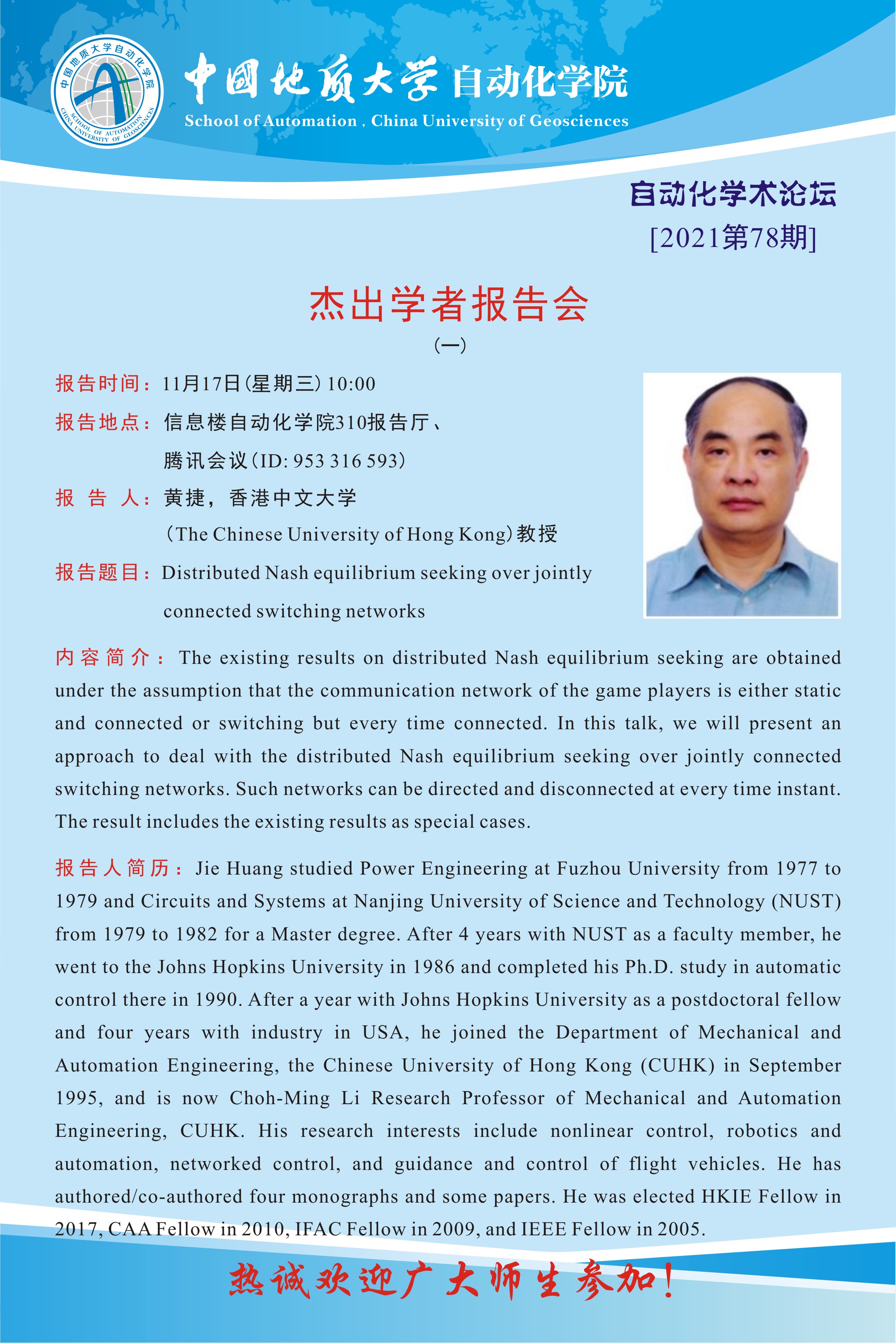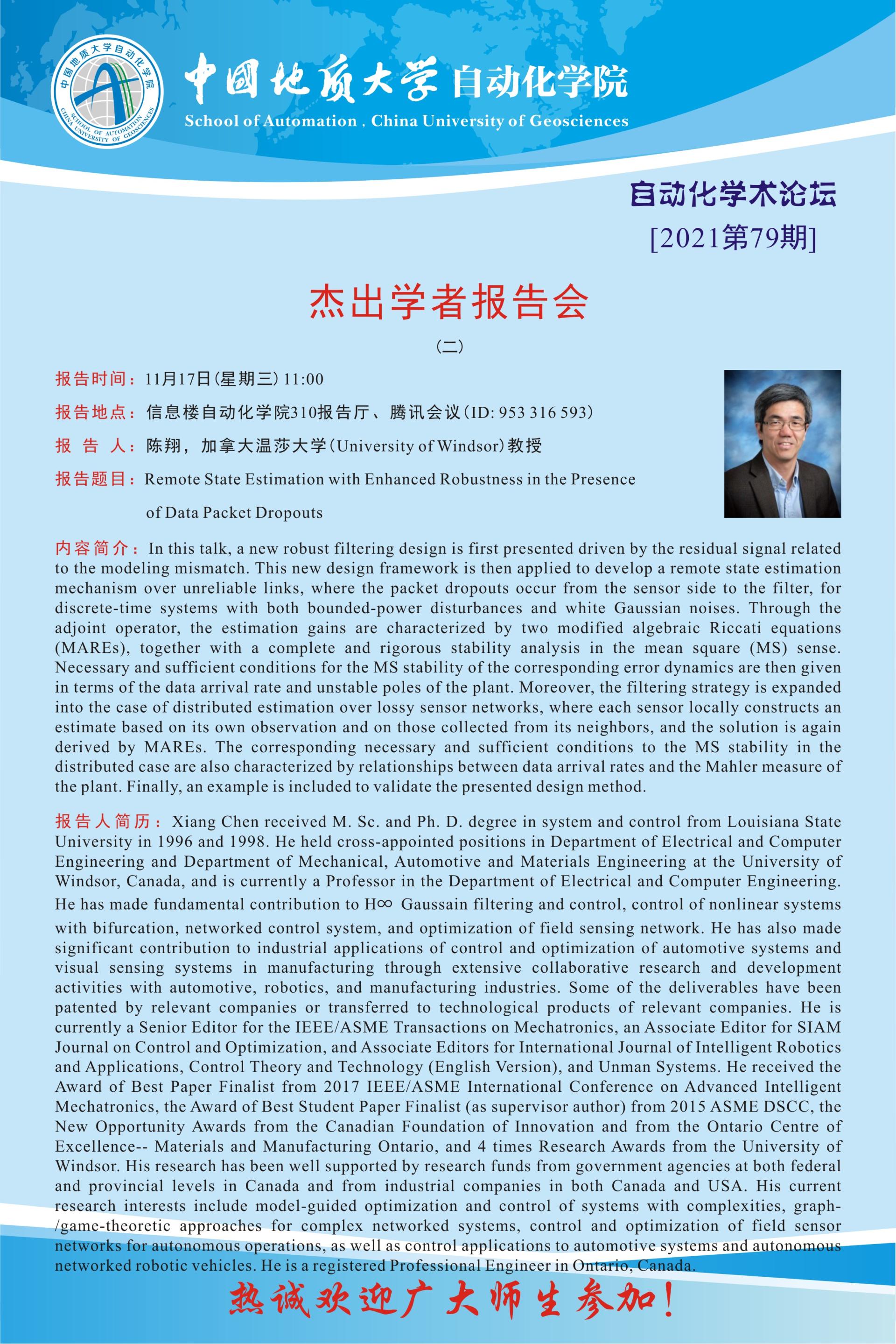 【11月17日】自动化学术论坛:杰出学者报告会