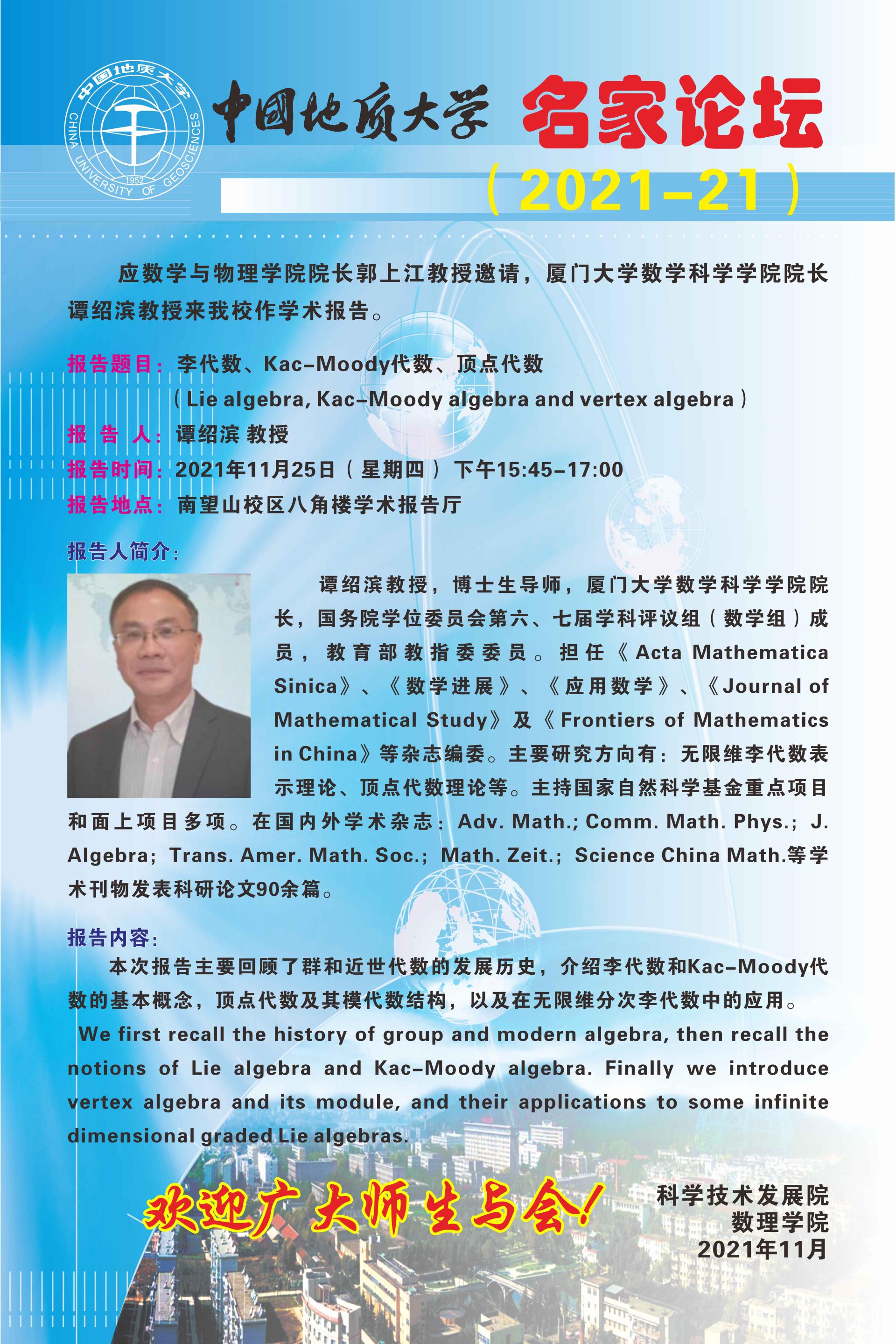 【11月25日】名家论坛:厦门大学数学科学学院院长谭绍滨教授学术报告