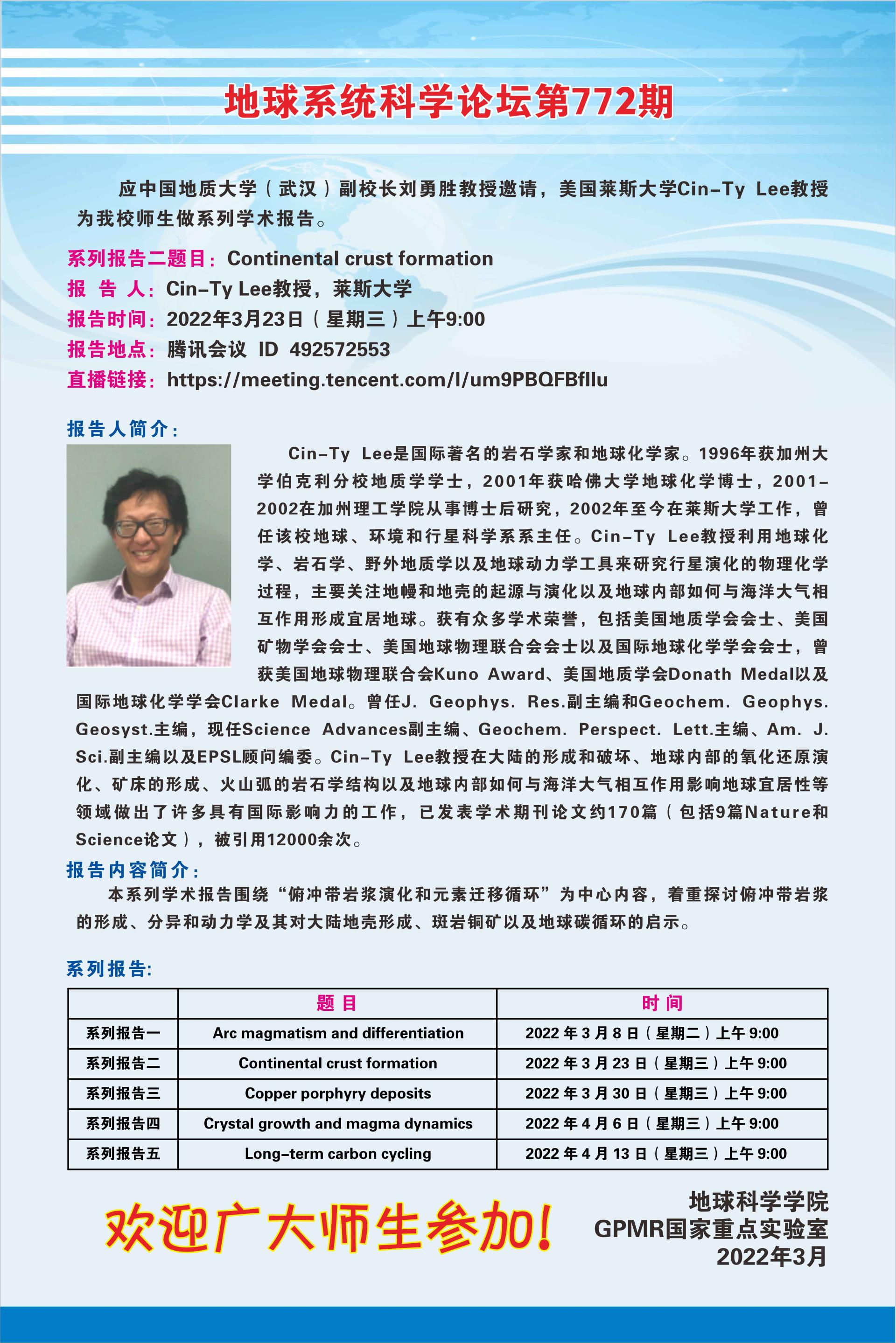 【3月23日】地球系统科学论坛:美国莱斯大学Cin-Ty Lee教授系列学术报告(二)