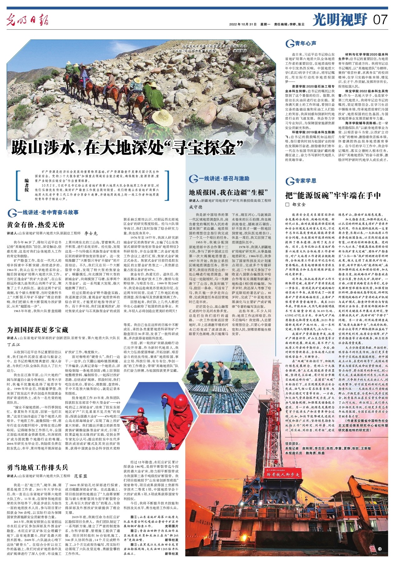 环境学院2019级本科生陈鹏飞:总书记的殷殷嘱托如远航灯塔,指引着我时刻为祖国矿业的绿色发展踔厉奋进,鼓励着我们青年一代在为祖国寻找富饶矿藏的漫漫征途上,奋力书写新时代地质人的英雄华章。