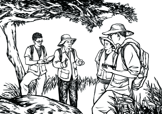 为了真实描绘野外实习与地质科考,创作小组搜集了上千张的照片作为参考。“绘本创作不是简单地把照片原原本本地画出来,而是要对图像进行提炼、取舍,然后根据叙事的要求进行创作,最后实现文图交融。”陈华文说。