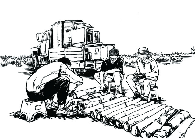 野外地质考察中,学生们把采集的岩心进行整理。这些岩心,是发现矿藏的一手“证据”。