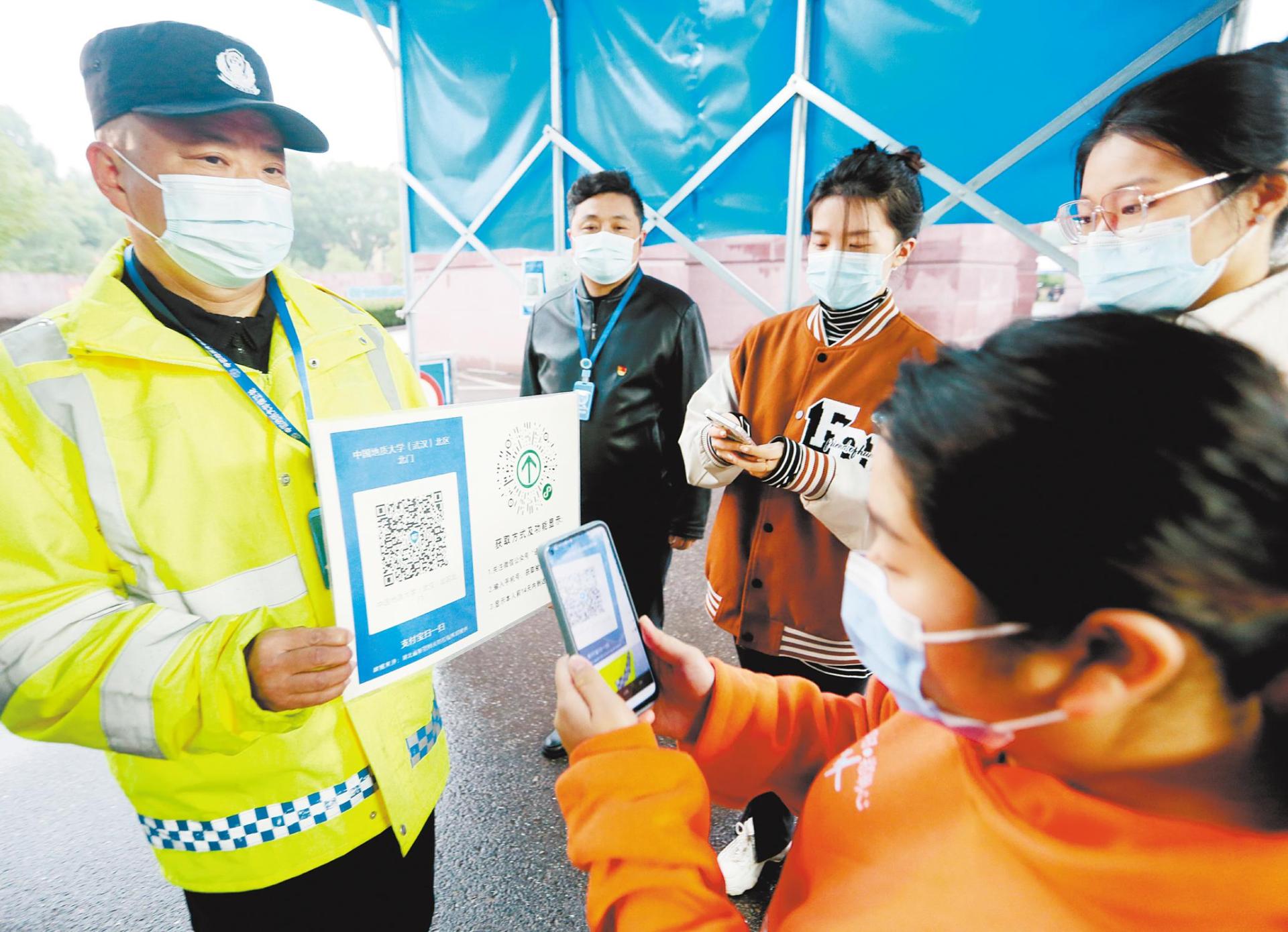 11月21日,米兰milan官方网站(武汉)安全保卫人员严格查询进出校园北区师生的健康绿码和通信大数据行程。