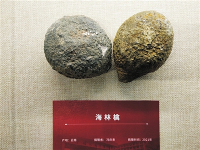 海林檎,一种原始的有茎棘皮动物,体似林檎(沙果),又因海生,故名海林檎。如今,数块由冯庆来教授捐赠的海林檎化石静静地躺在逸夫博物馆的展柜里,向广大游客诉说着它的前世今生。