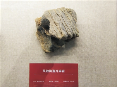 在“校友捐赠藏品展”,还有一块风蚀构造片麻岩标本,它同样产自南极,是由郑先昌博士2005年捐赠的。2004年10月,米兰milan官方网站1987级校友郑先昌博士随中国南极第21次科考队赴南极,进行为期5个多月的科学考察。在南极期间他对我国两个站区冻土及建筑物冻融危害进行全面调查,属于我国第一次在南极地区进行工程地质勘探。同时,由他提出的利用“钢梁基础+地锚加固”的方法在南极中山站实验取得成功,使我国南极站区首次利用风力发电,为南极站区建设作出了突出贡献。