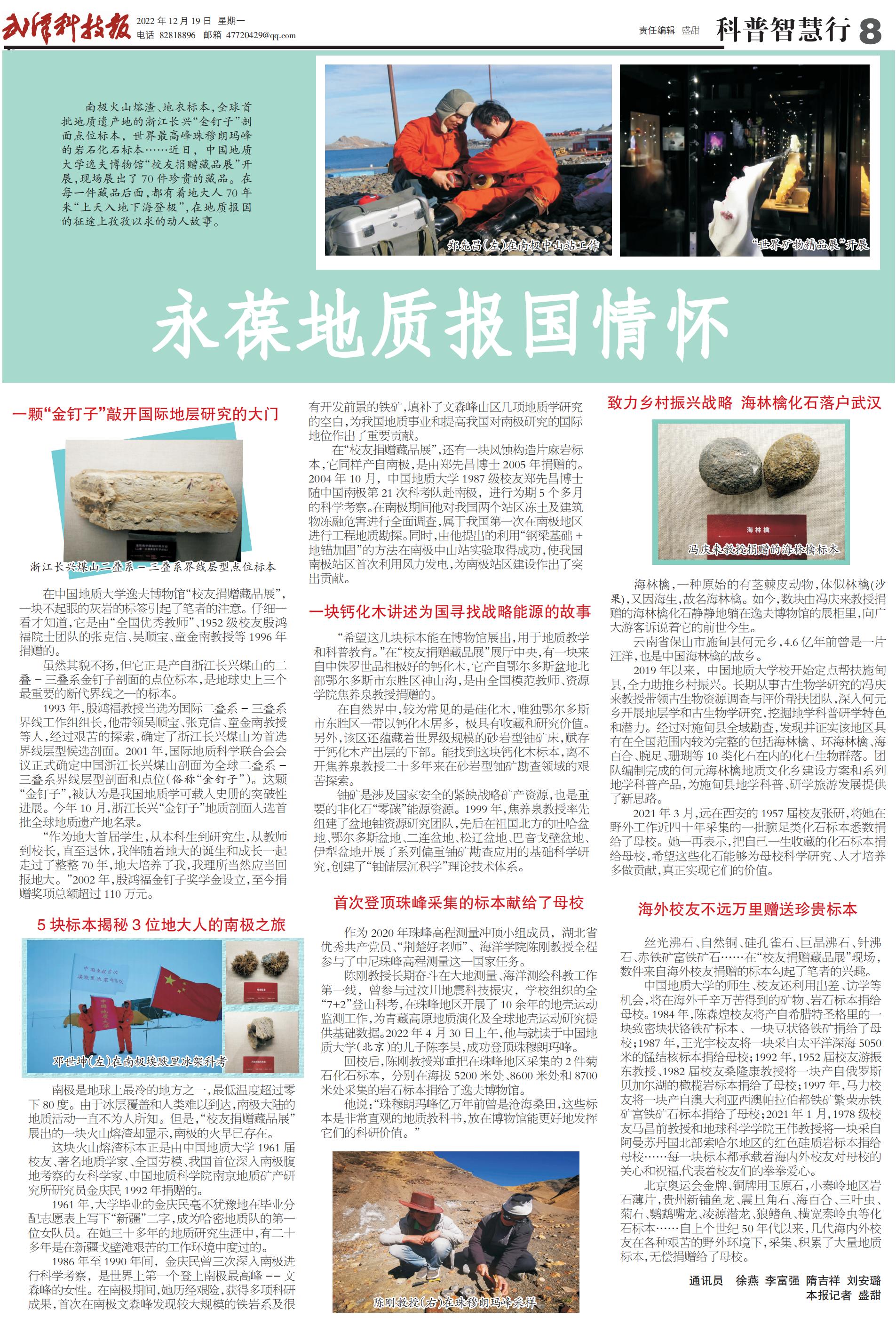 南极火山熔渣、地衣标本,全球首批地质遗产地的浙江长兴“金钉子”剖面点位标本,世界最高峰珠穆朗玛峰的岩石化石标本……近日,米兰milan官方网站逸夫博物馆“校友捐赠藏品展”开展,现场展出了70件珍贵的藏品。在每一件藏品后面,都有着地大人70年来“上天入地下海登极”,在地质报国的征途上孜孜以求的动人故事。