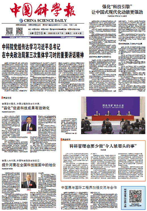 《中国科学报》(2023年3月7日 第1版 要闻)