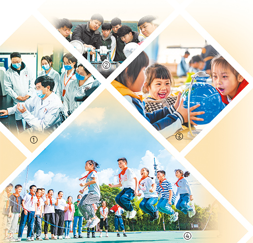 图④:江苏省宿迁市宿城区古城实验小学的学生在欢快地跳绳。
