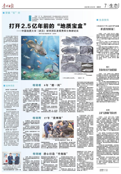 这一重大发现,究竟具有怎样的研究价值?这个神秘“地质宝盒”是如何被打开的呢?近日,记者专访宋海军教授和他的研究团队,和他们一起走进贵州生物群,探寻史上生物大灭绝后新世界见证者的奥秘。