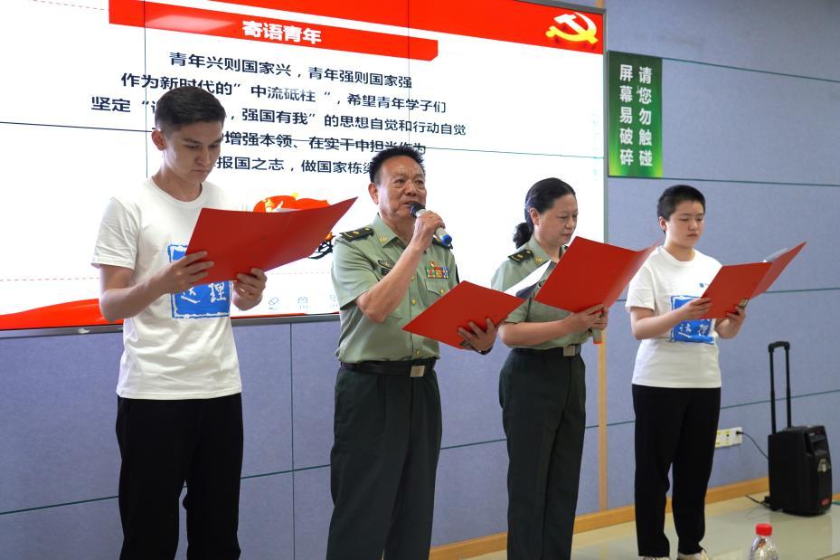 活动中,军休二中心艺术团老战士丁建强、王珂和学生们共同朗诵了《请党放心 强国有我》。台下学子们聆听着饱含情感的朗诵,被浓浓的爱党爱国情打动,雷鸣般的掌声经久不息。
