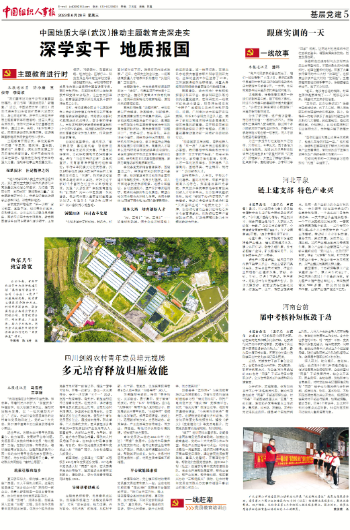 坚持强特色、入主流,学校以个性化培养、国际化视野、科教产教协同育人为特色,探索建设李四光学院、未来技术学院等新地学教育拔尖创新人才培养平台。充分发挥党组织优势,依托“援派干部+科研团队”帮扶模式,推动云南省施甸县成功打造“天然富硒土地”“地质文化乡”品牌,协助湖北省竹山县引进绿松石抖音电商直播基地,推动绿松石年产值突破50亿元,打造教育帮扶助力乡村振兴的地大样本。