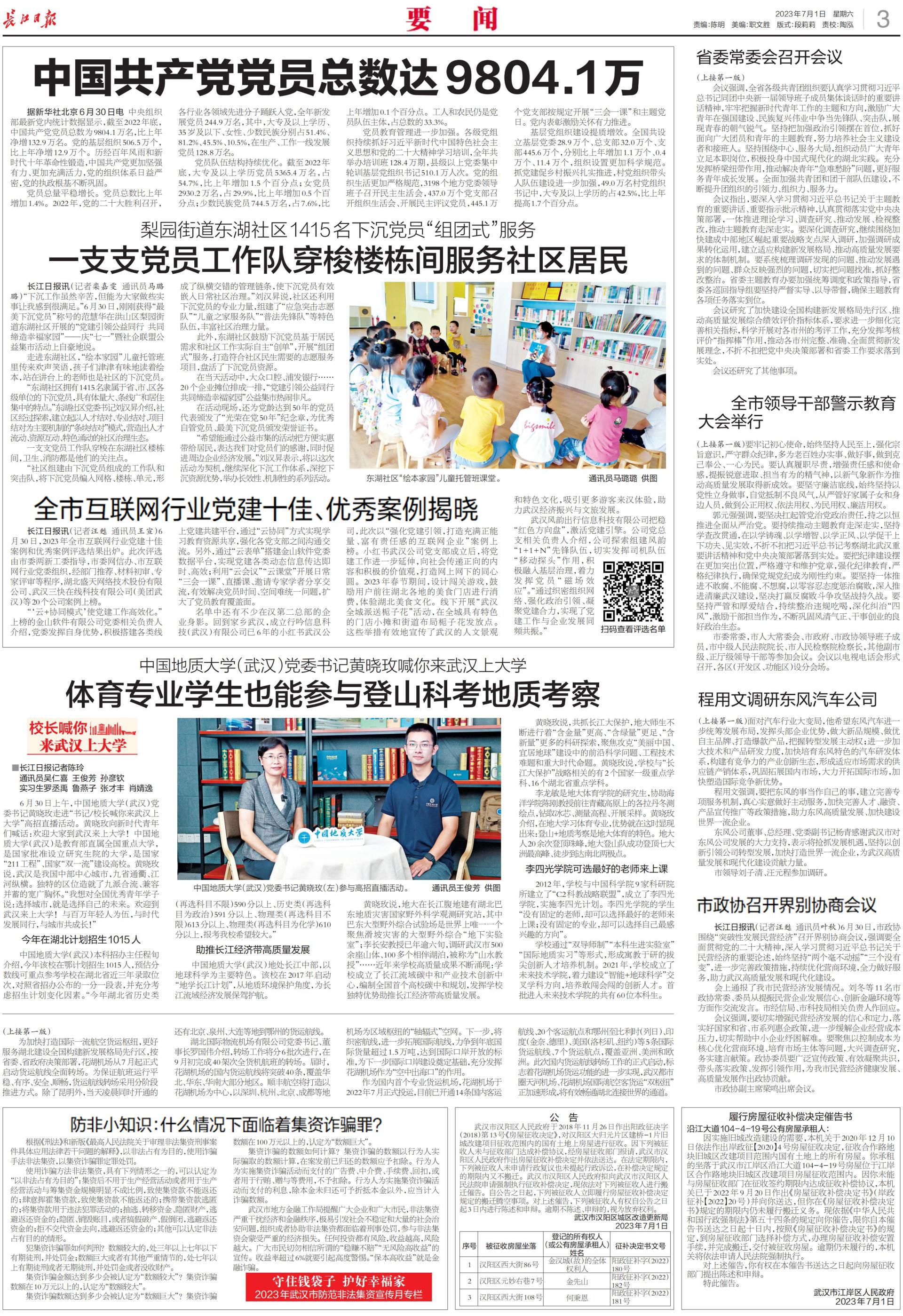 黄晓玫说,地大在长江腹地建有湖北巴东地质灾害国家野外科学观测研究站,其中巴东大型野外综合试验场是世界上唯一一个聚焦滑坡灾害的大型野外综合“地下实验室”;李长安教授已年逾六旬,调研武汉市500余座山体、100多个相伴湖泊,被称为“山水教授”……近年来学校高质量成果不断涌现:学校成立了长江流域碳中和产业技术创新中心,编制全国首个高校碳中和规划,发挥学校独特优势助推长江经济带高质量发展。