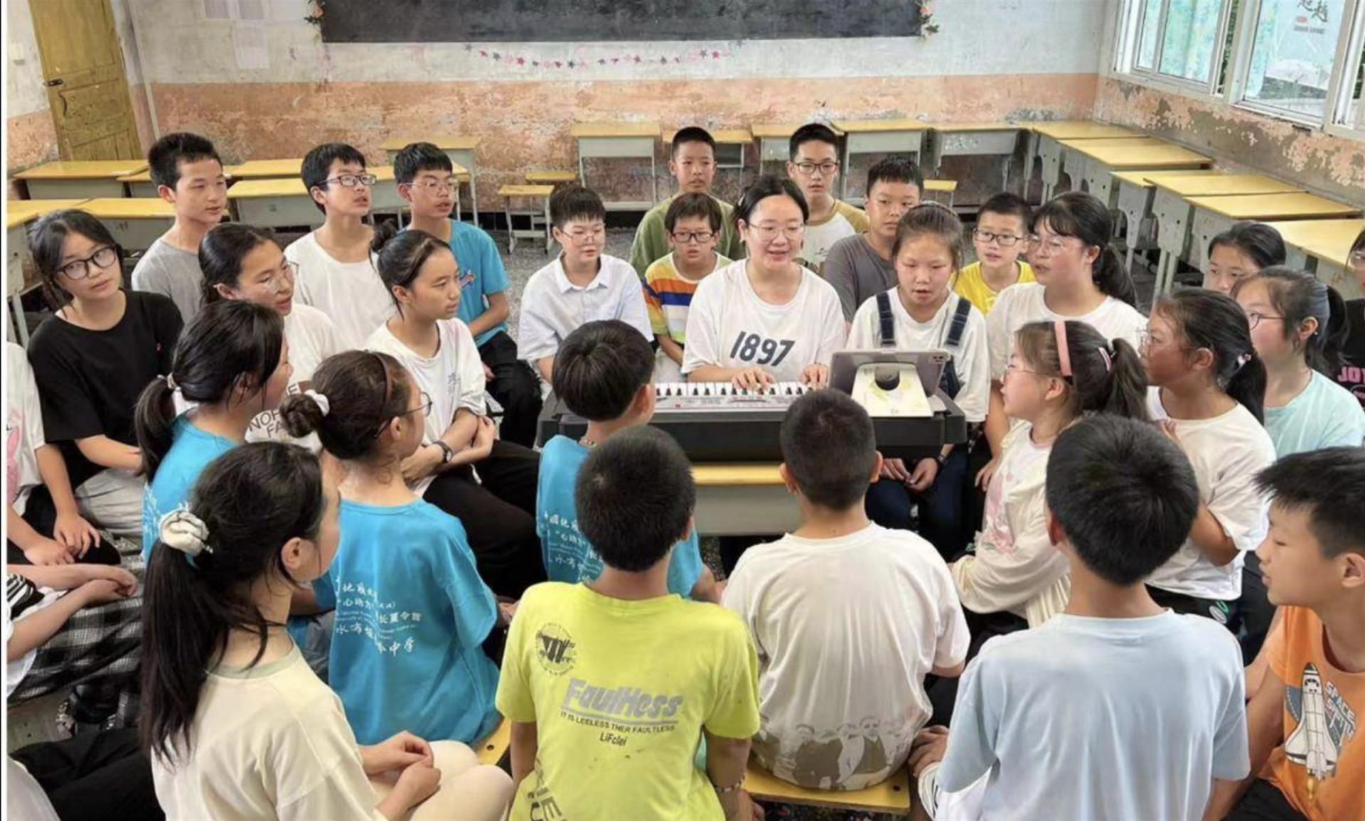 7月12日,巴东县长岭初级中学内,在志愿者的带领下,青少年们唱着歌儿,挥舞双臂,手舞足蹈……这不是在教授歌舞,这是一堂“心理成长课”。