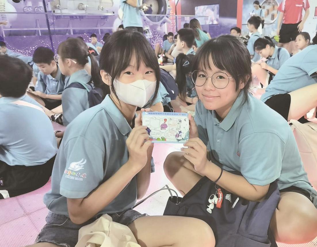 在河南郑州,20余名来自两岸的“和平小天使”们参加了在河南自然博物馆举办的为期两天的“我从河南来 共探中国龙”主题科学探索之旅。共搭夜宿博物馆的帐篷、一起了解姓氏文化、根亲文化、共同协作古生物课题……“世中逢尔,雨中逢花;天下没有不散之席,但我永远会在你身边。”“送你一个笑脸、一朵鲜花和一句‘希望你考上一个好初中、好大学,祝你开心!’”两天的共处时间一晃而过,离别时,大陆小学生张子瑶和他的台湾小天使伙伴林妤橦依依不舍,互赠留言,相约来年再见!