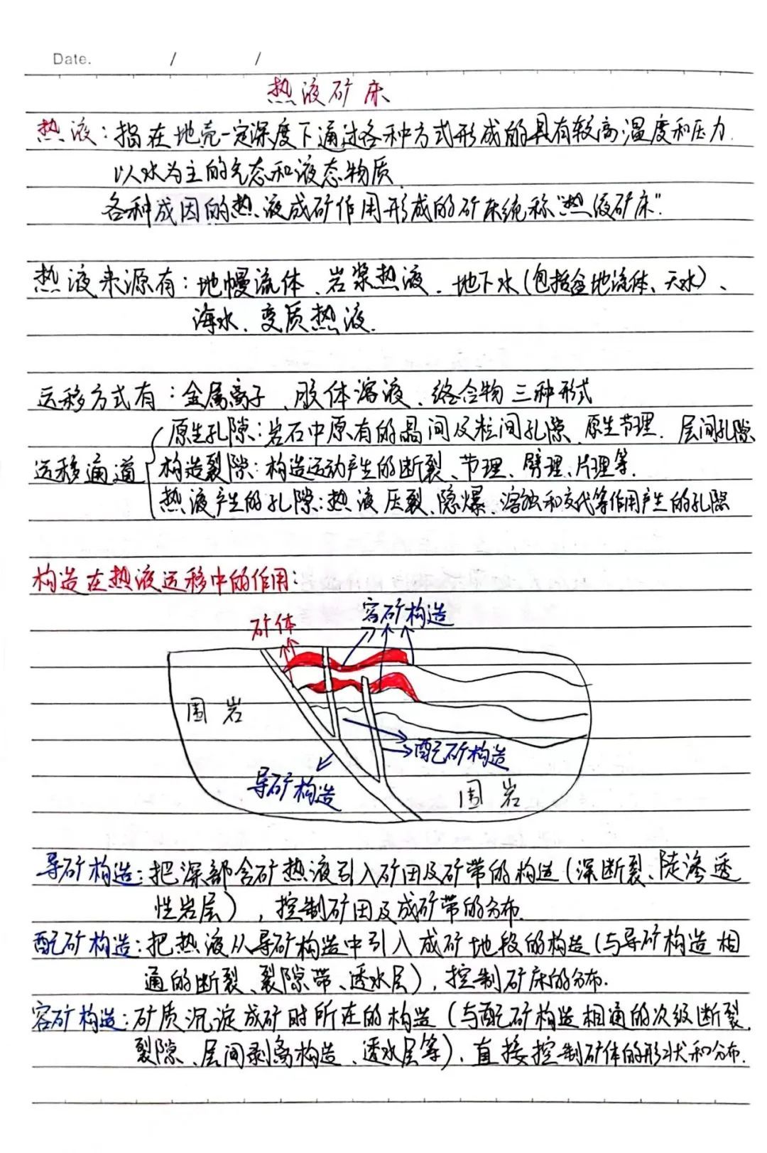 图为张陈同学的矿床学手写笔记
