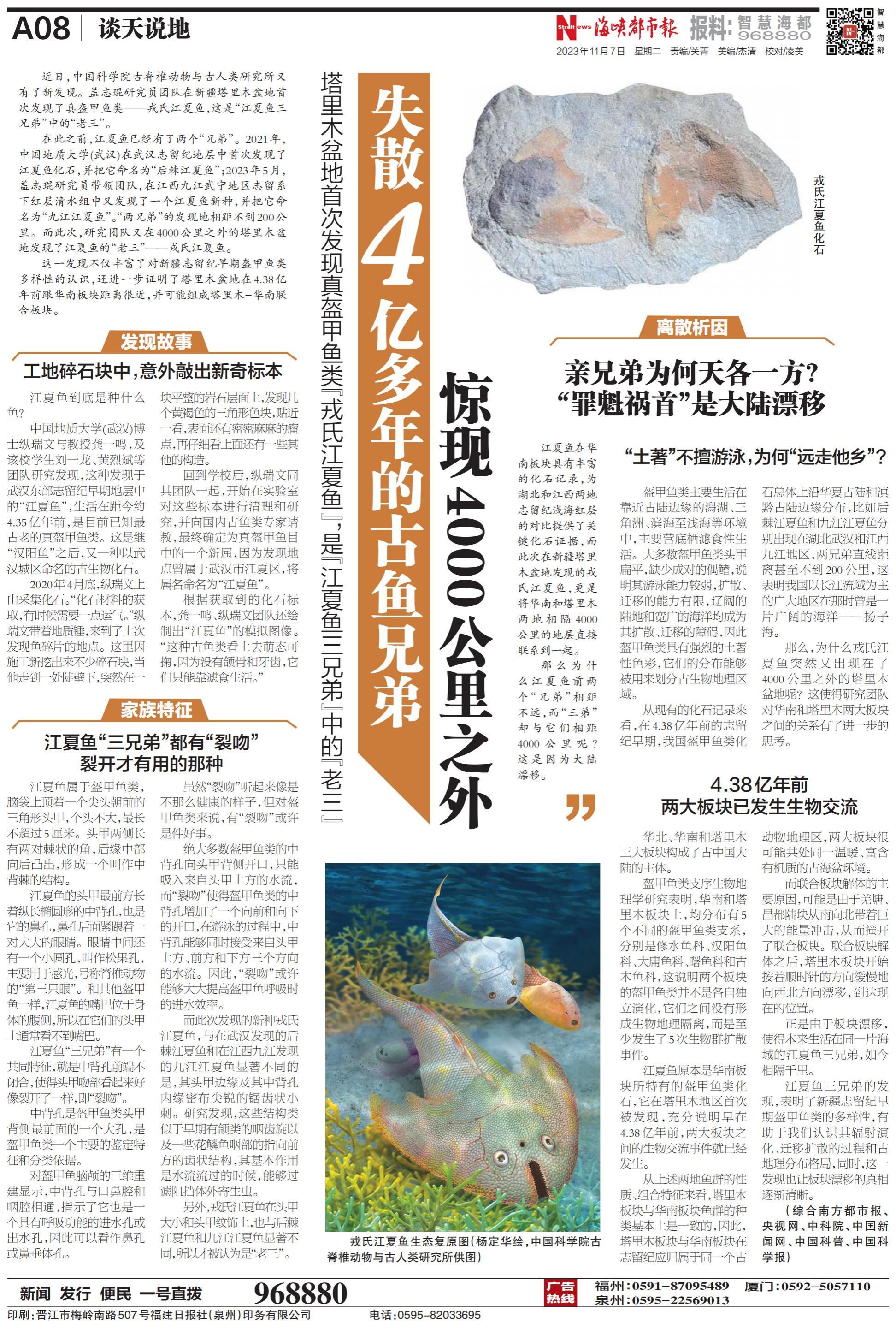 链接:失散4亿多年的古鱼兄弟 惊现4000公里之外 - 海峡都市报数字报 (fjdaily.com)