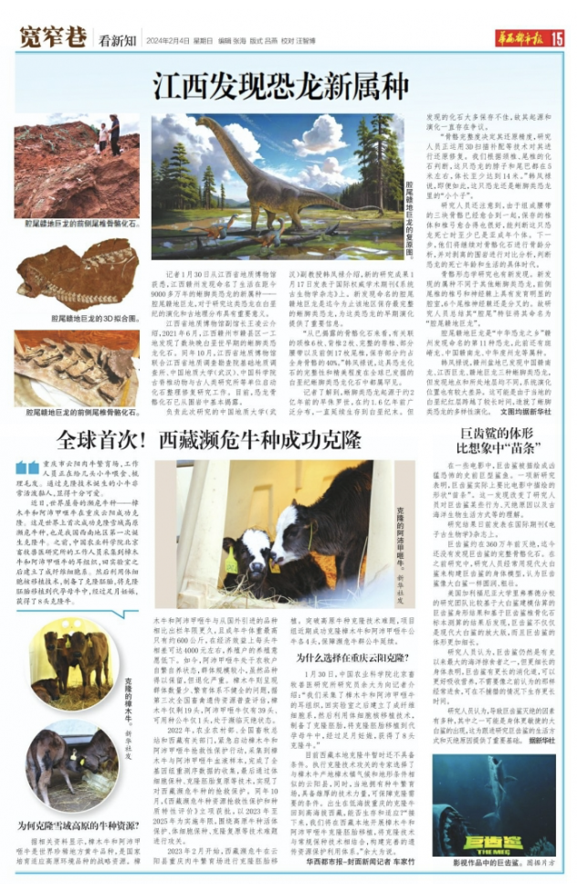 记者1月30日从江西省地质博物馆获悉,江西赣州发现命名了生活在距今9000多万年的蜥脚类恐龙的新属种——腔尾赣地巨龙,对于研究这类恐龙在白垩纪的演化和古地理分布具有重要意义。