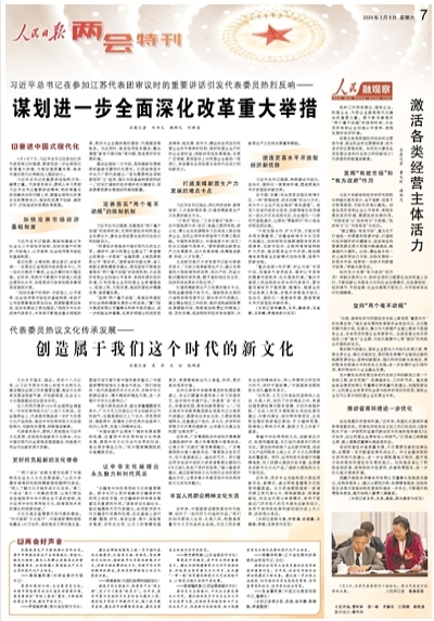3月5日下午,习近平总书记在参加江苏代表团审议时强调,要谋划进一步全面深化改革重大举措,为推动高质量发展、推进中国式现代化持续注入强劲动力。
