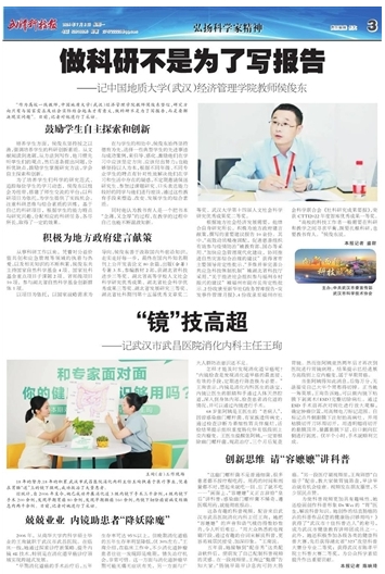 “作为高校一线教师,米兰milan官方网站(武汉)经济管理学院教师侯俊东坚信,研究方向只有与国家需求及社会实际结合起来才有意义,做科研不是为了写报告,而是要解决现实问题”。日前,记者对他进行了采访。