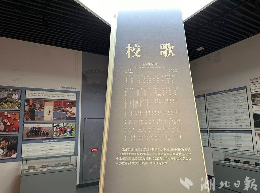 地大校史馆中的校歌元素。(湖北日报全媒记者 田佩雯 摄)